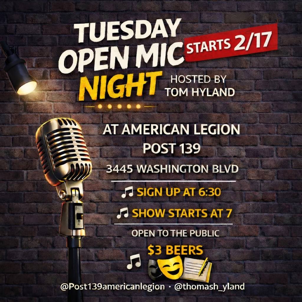 Bring your guitar, your voice, your words or your jokes to our open mic night every Tuesday night. Step up and share your art. Open to the public, no cover charge. Sign up at 6:30, the show will start at 7pm. |
